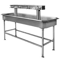 You are sure to get what you need with the Commercial Stainless Steel Multi-Station Service Sink that can be ordered in various sizes. This sink comes with an eight inch backsplash and is made with 14 gauge stainless steel with a bead-blast finish. Choose this stainless steel sink to come in two to eight stations. This gives you the chance to buy the exact sink size you have space for or how many employees you need to accommodate. You have the option of purchasing this sink with or without metered faucets depending on your preference.